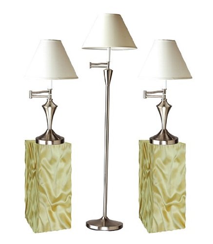 Set of 3 Satin Steel Finish Swing Arm Table & Floor Lamp Set Review